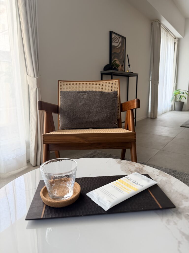 ソファーコーナーで水分補給をしてくださいね。